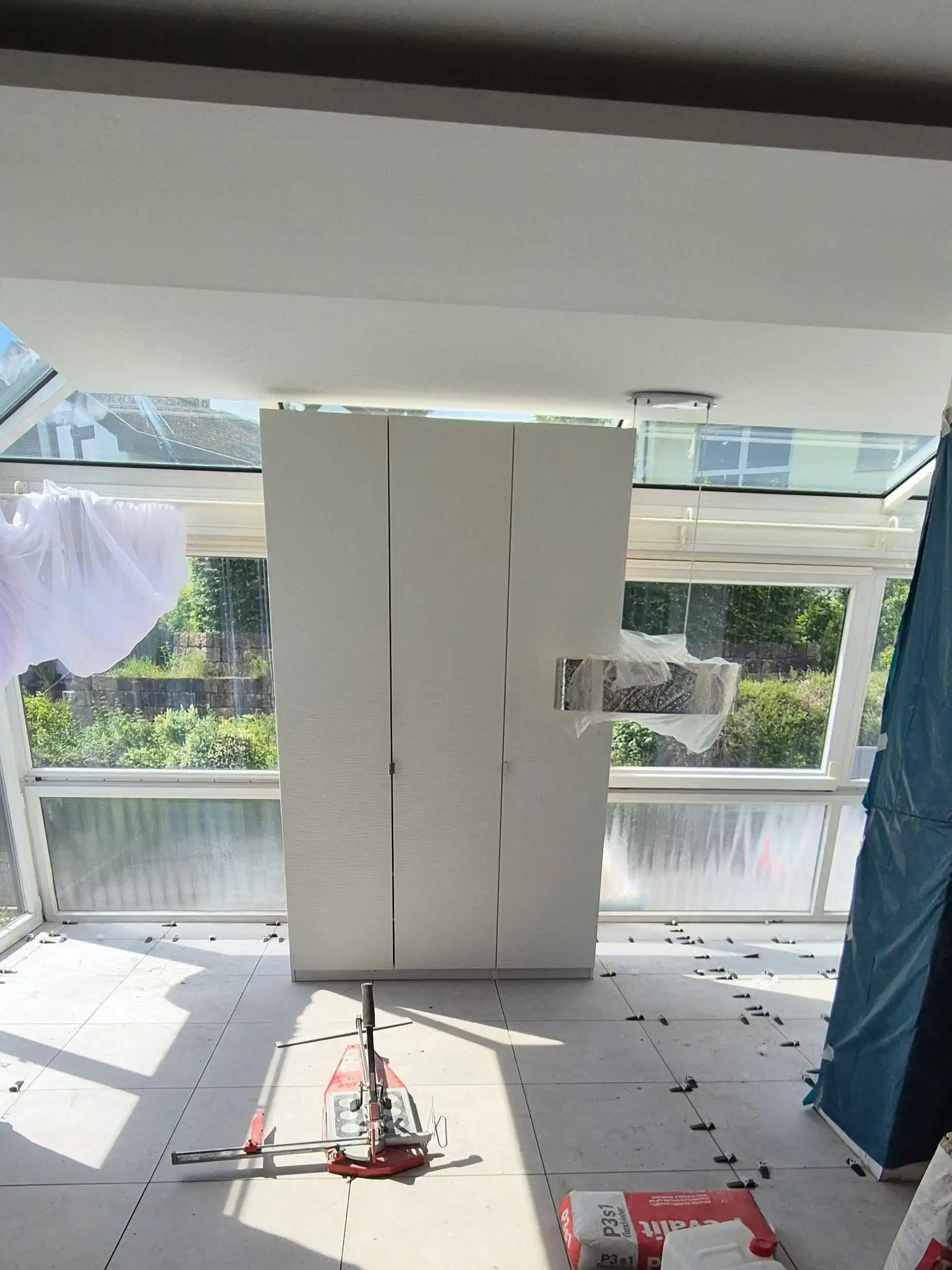 - Verlegung keramischer Fliesen im Format 600 × 600 mm.